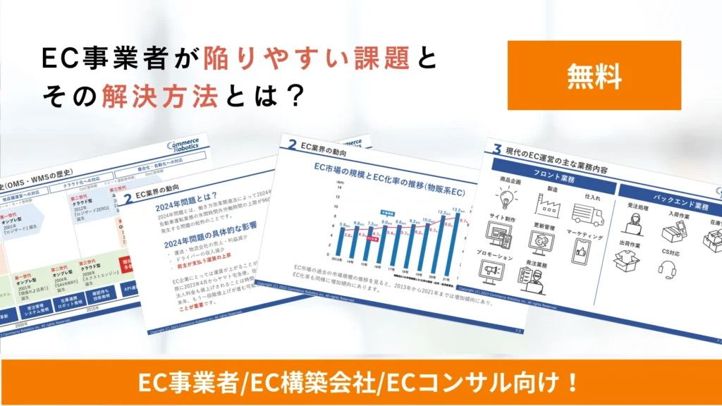 『コマースロボ導入事例集』EC自動出荷システム「コマースロボ」を導入いただいた企業様の声をまとめた資料です。
